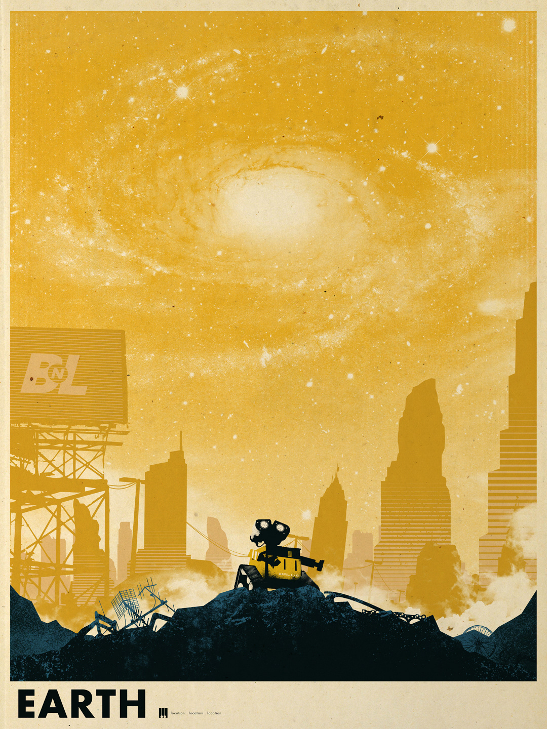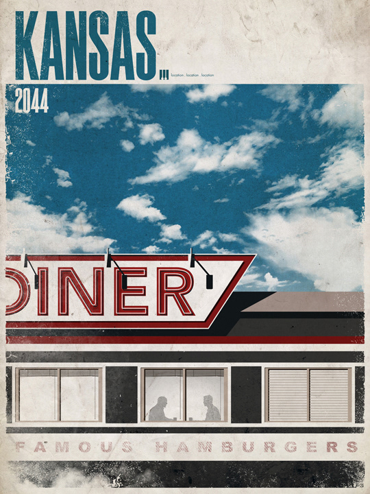 A collection of prints that features movie locations in travel print form.