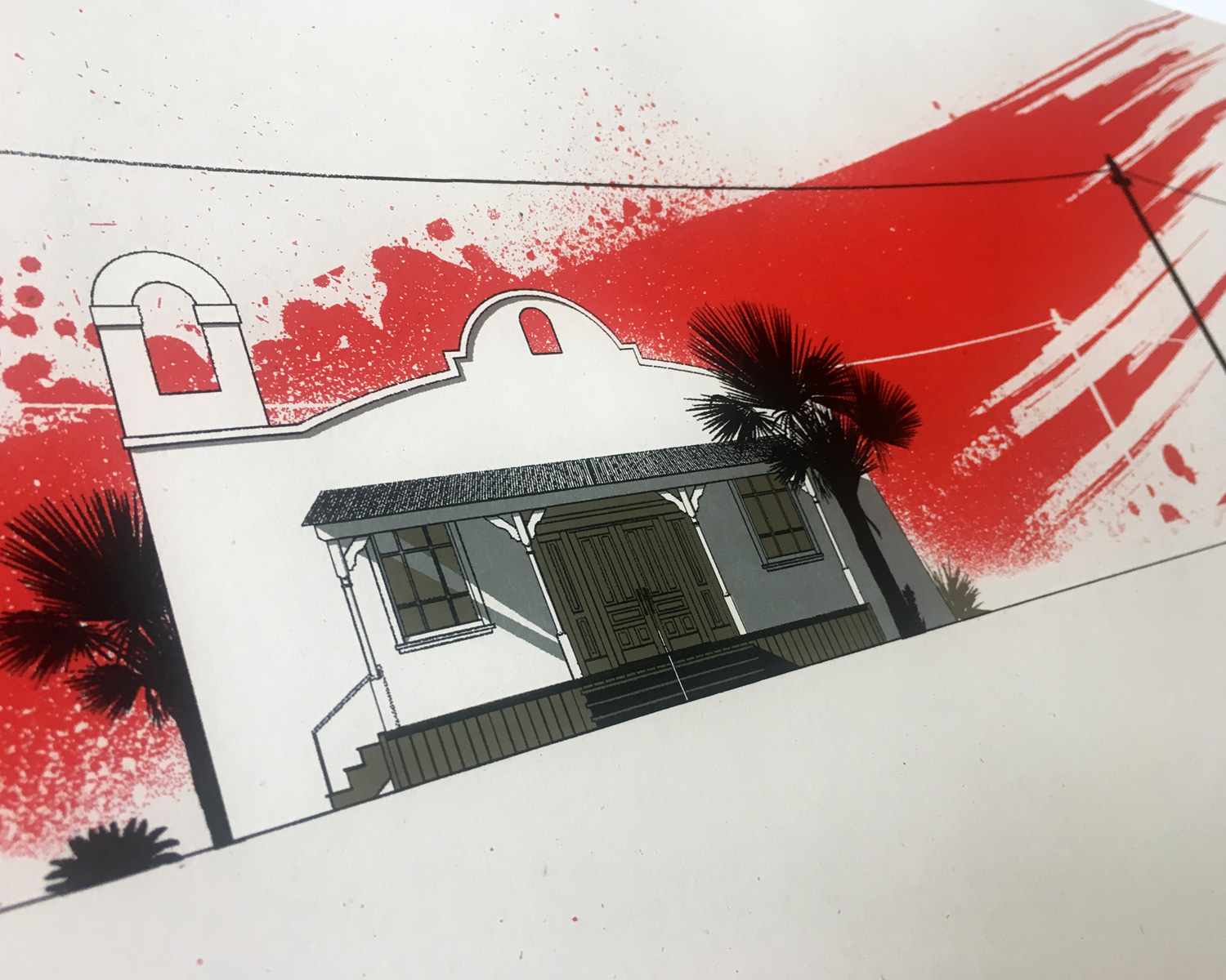 Galerie F hosted my second show "Location Location Location: Architecture" which features architecture found in pop culture. From the converted mental health building that was used as the Hawkins Laboratory in the hit series Stranger Things, to the strip mall in Austin TX that played work space to Initech in the comedy, Office Space.